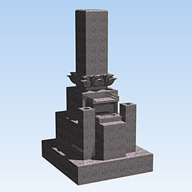 神戸型といわれ、兵庫県では一般的によく使用されるカタチの石碑に蓮華台を付けたタイプ。1㎡~1・5㎡くらいの広さ用。1㎡の墓地をお持ちで少し高級感をだしたい方にオススメ。